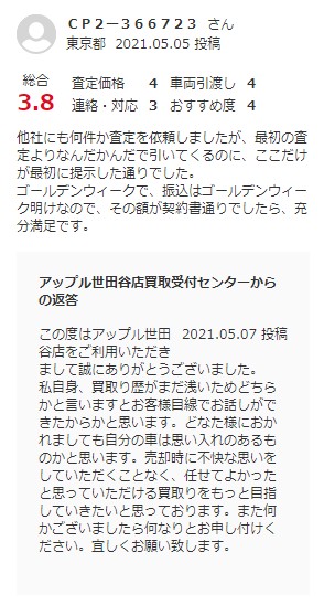 他社にも何件か査定を依頼しましたが、最初の査定よりなんだかんだで引いてくるのに、ここだけが最初に提示した通りでした。