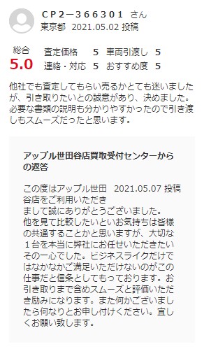 他社でも査定してもらい売るかとても迷いましたが、引き取りたいとの誠意があり、決めました。
