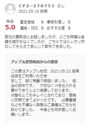 お車のご相談・ 査定だけでもOK! カンタン 入力 30秒 アップルがブランド買取始めました! お電話でも受付中! 受付時間10:00 ~ 19:00 0120-037-315 お車のご相談・ 査定だけでもOK! カンタン 入力 30秒 アップルがブランド買取始めました! お電話でも受付中! 受付時間10:00 ~ 19:00 0120-037-315 アップルがブランド買取始めました! お電話でも受付中! 受付時間10:00 ~ 19:00 0120-037-315 店舗情報 在庫車 スタッフ紹介 ブログ お客様の声 キャンペーン お得 無料査定 click お客様の声 ご記入日: 2021/05/24 東京都世田谷区 ご利用日:2021/5/8 グー買取より I様 車名:メルセデス・ベンツ Cクラス 数社の買取店とお話しましたが、どこも明確な金額も提示もなくでしたが、こちらではシッカリ対応してもらえて安心して取引できました。 前へ 次へ お客様の声一覧を見る