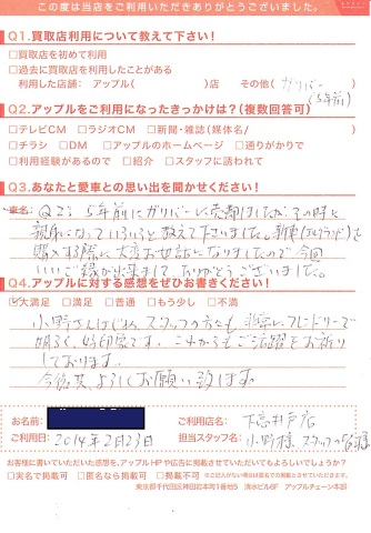お車のご相談・ 査定だけでもOK! カンタン 入力 30秒 アップルがブランド買取始めました! お電話でも受付中! 受付時間10:00 ~ 19:00 0120-037-315 お車のご相談・ 査定だけでもOK! カンタン 入力 30秒 アップルがブランド買取始めました! お電話でも受付中! 受付時間10:00 ~ 19:00 0120-037-315 アップルがブランド買取始めました! お電話でも受付中! 受付時間10:00 ~ 19:00 0120-037-315 店舗情報 在庫車 スタッフ紹介 ブログ お客様の声 キャンペーン お得 無料査定 click お客様の声 ご記入日: 2014/03/17 東京都 世田谷区 K様 小野さんはじめスタッフの方々も非常にフレンドリーで明るく好印象です。これからも活躍をお祈りしております。今後とも、宜しくお願い致します。 前へ 次へ お客様の声一覧を見る