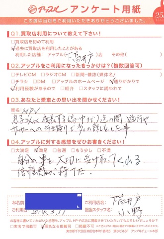 自分の車を大切に受け取ってくれる信頼感が持てた。
