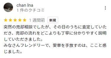 みなさんフレンドリーで、愛車を手放すのは、ここと感じました。