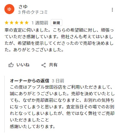 この度はアップル世田谷店をご利用いただきまして、