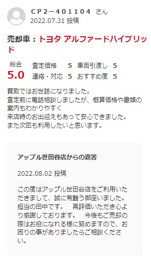 東京都渋谷区 ご利用日:2022/7/24 渋谷区(GOOレビュー) K様 車名:トヨタ アルファードハイブリッド(~H26年12月)