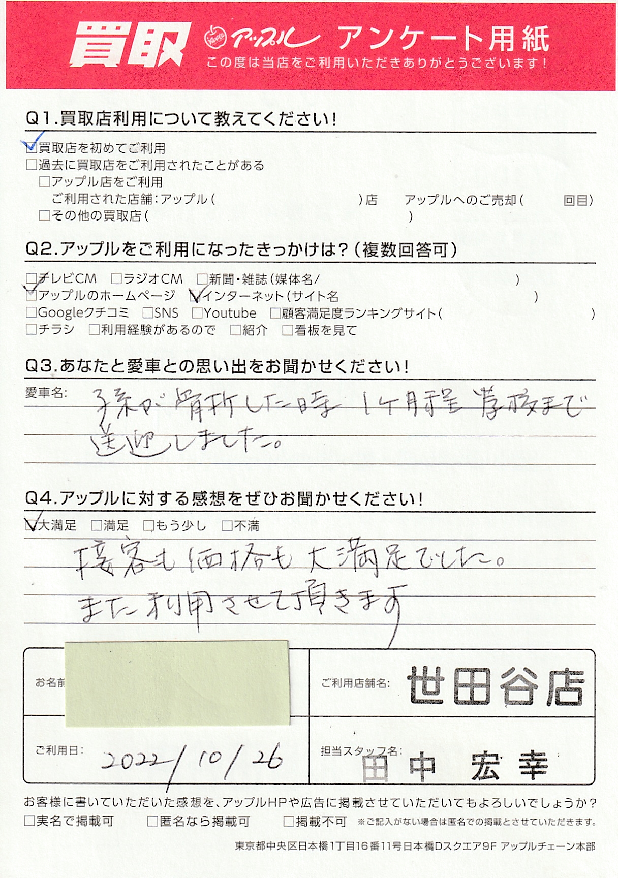 数あるお車買取店の中から、アップル世田谷店を選んでいただき