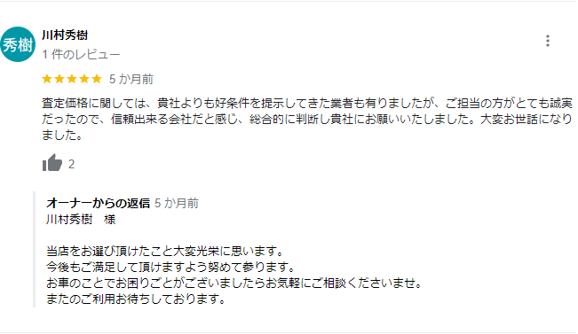 査定価格に関しては、貴社よりも好条件を提示してきた業者も有りましたが、