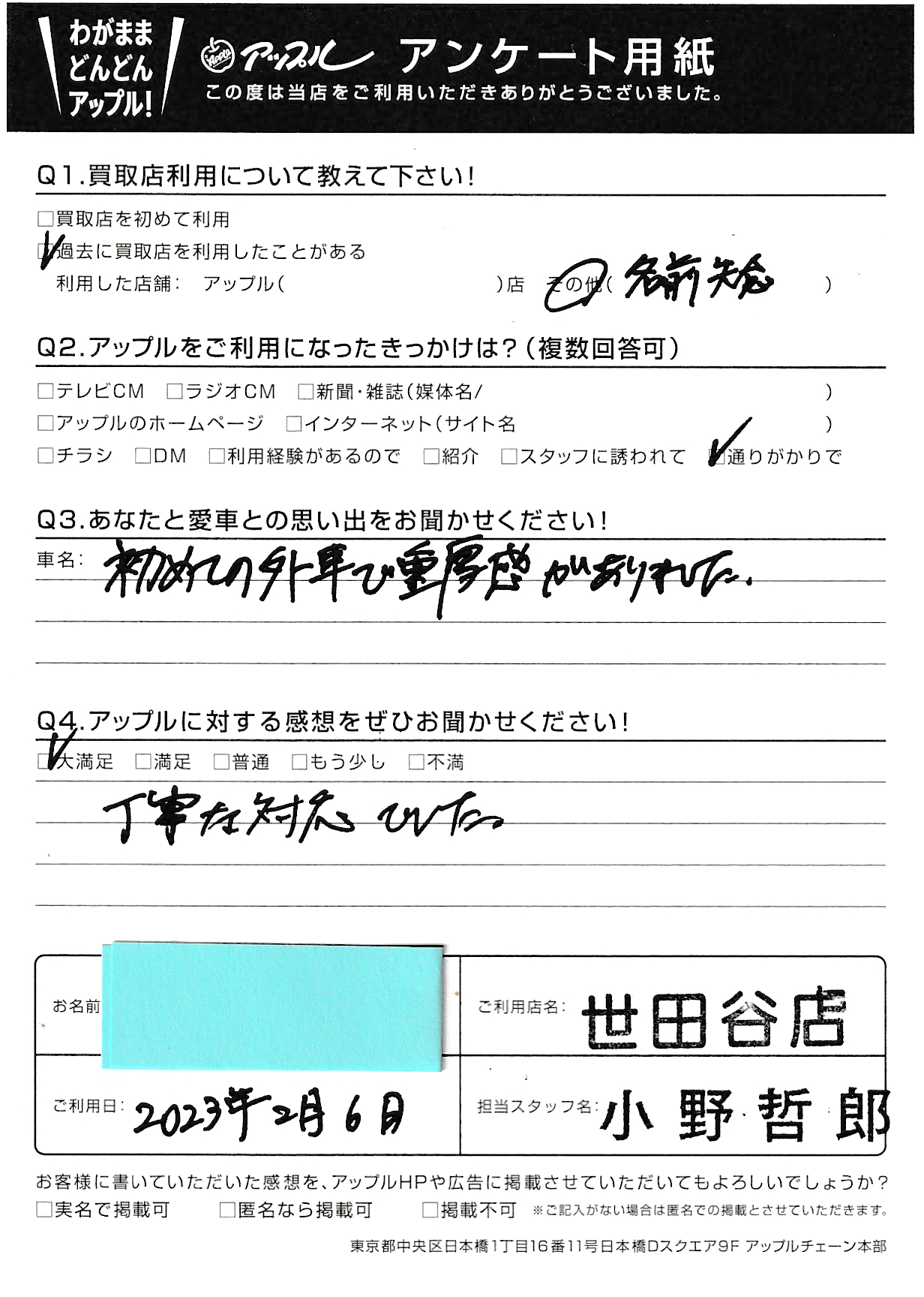 数あるお車買取店の中から、アップル世田谷店を選んでいただき