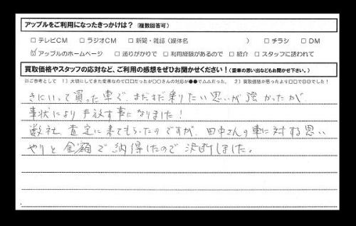 数社、査定に来てもらったのですが、田中さんの車に対する思い
