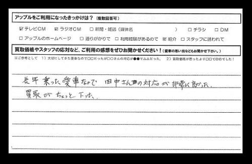 長年乗った愛車なので田中さんの対応が非常に良かった