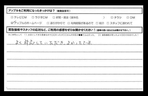よく対応していただきよかったです