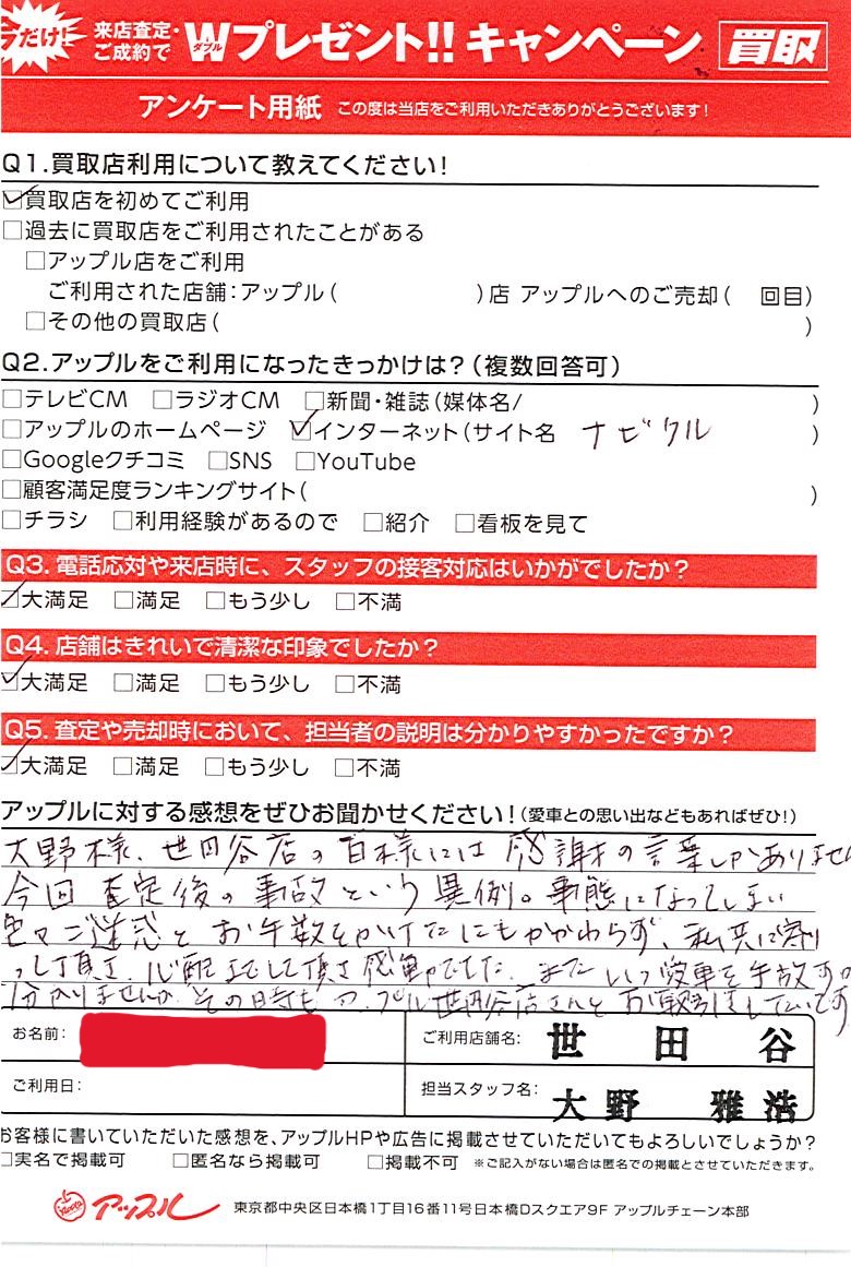 大野様、世田谷店の皆様には感謝の言葉しかありません。