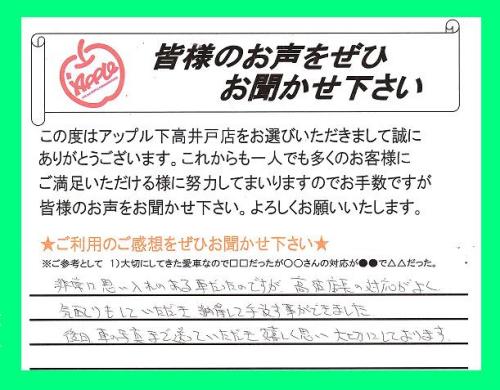 非常に思い入れのある車だったのですが高波店長の対応がよく