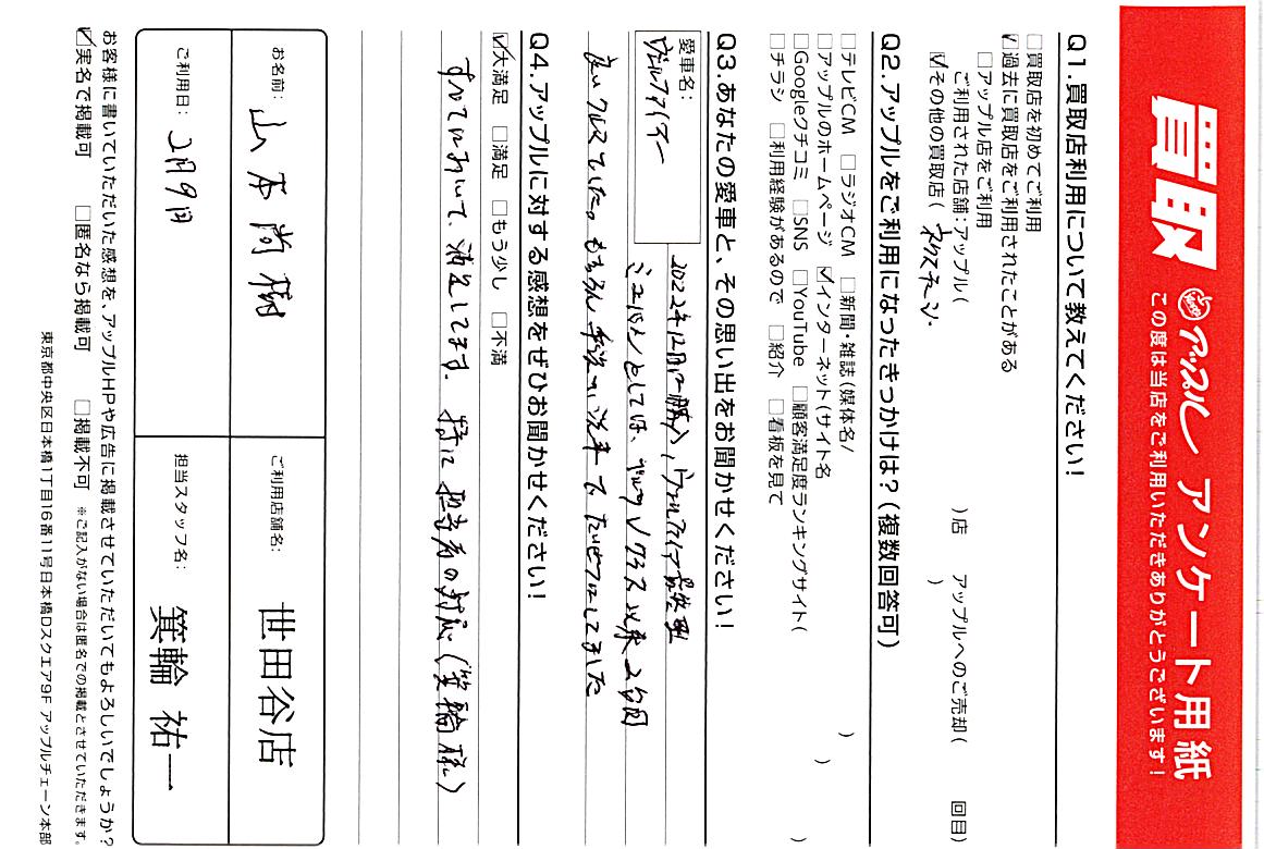東京都大田区 アンケート用紙より 山本 尚樹様 車名:トヨタ ヴェルファイア(H27年1月~のHYBRID含む)