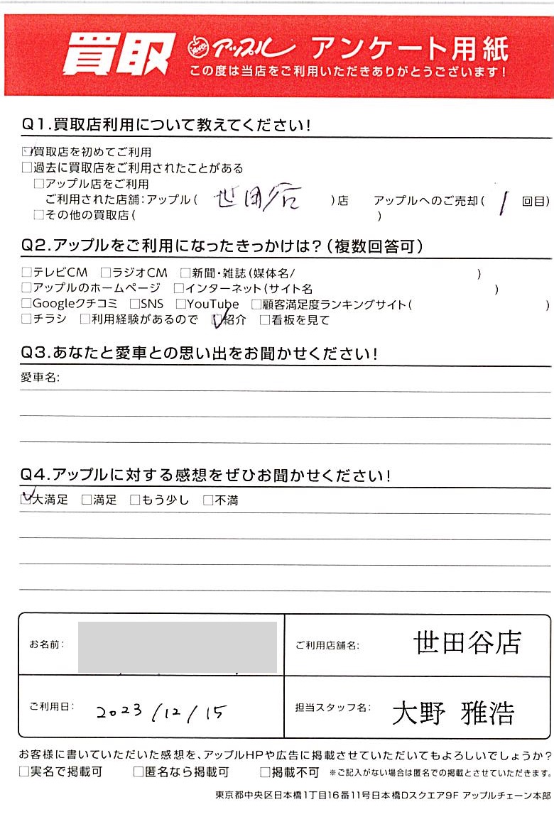 東京都府中市 アンケート用紙より様 車名:トヨタ SAI