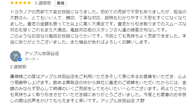 廣瀬様この度はアップル世田谷店をご利用いただきそして身に余るお言葉をいただき、心より感謝申し上げます。