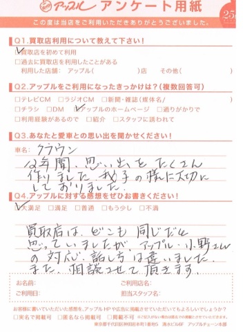 この度はアップル下高井戸店をご利用頂き誠に有難う御座いました。アンケートを読ませて頂き涙が出てしまいました。