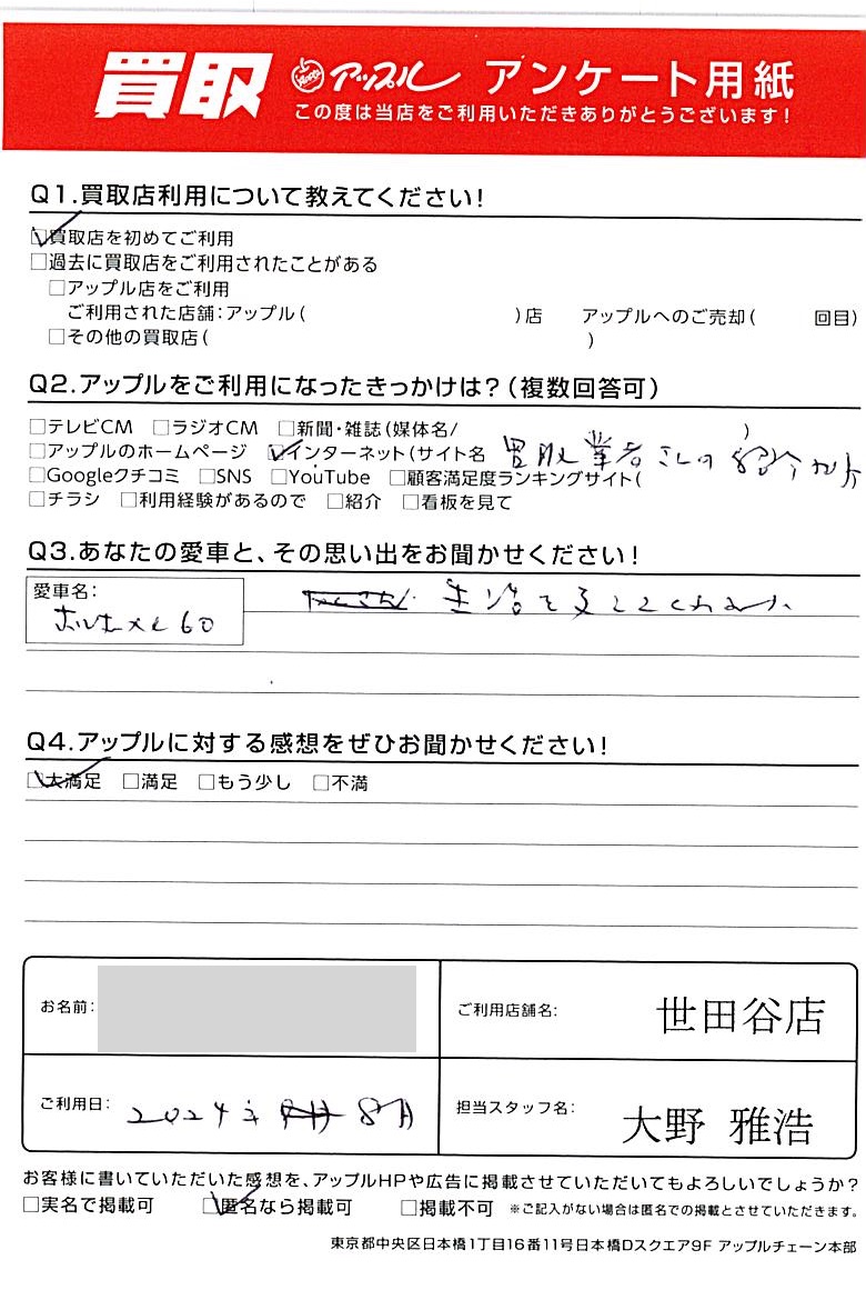 東京都杉並区 アンケート用紙より O様 車名:ボルボ XC60