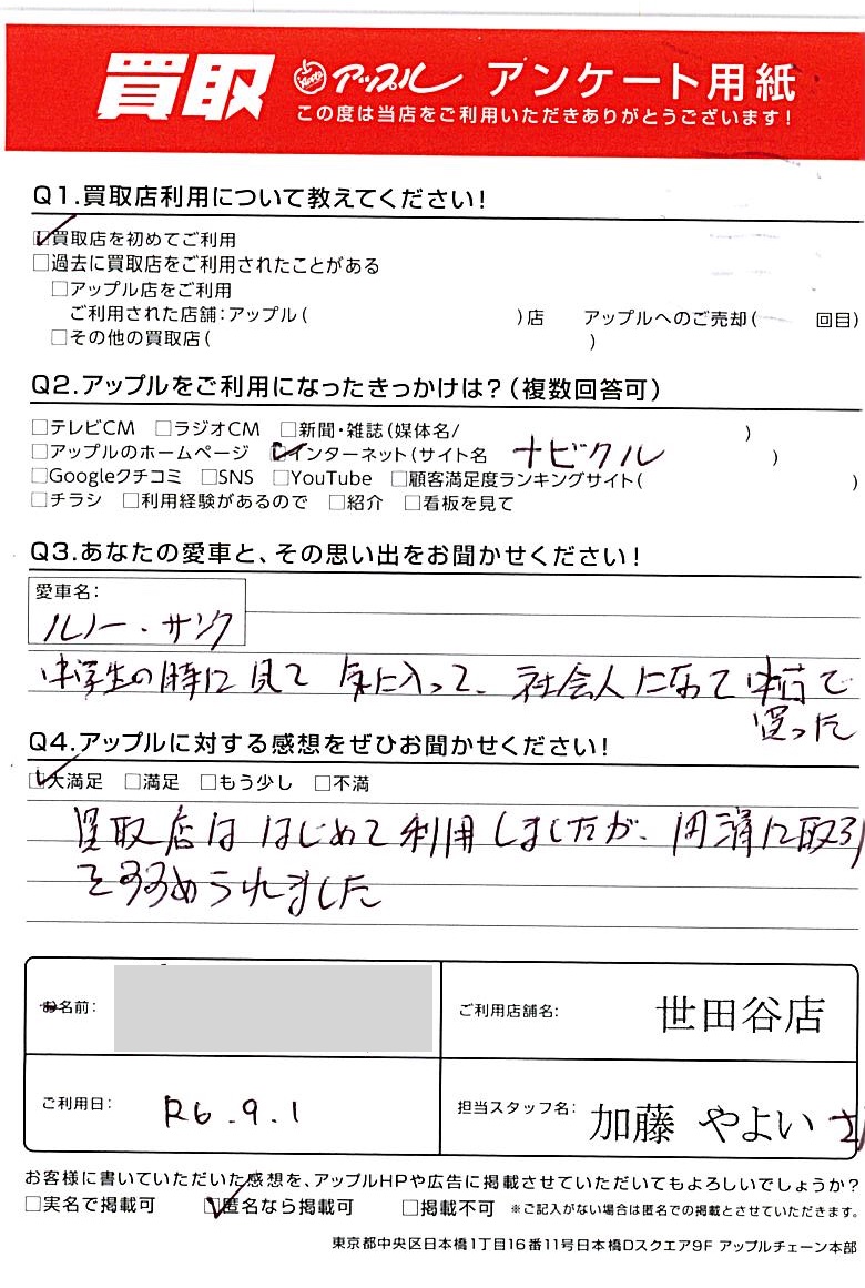 東京都世田谷区 アンケート用紙より H様 車名:ルノー 5