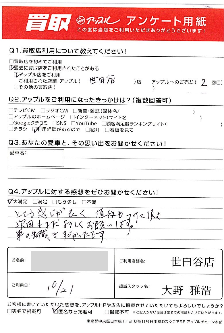 東京都世田谷区 アンケート用紙より N様 車名:マツダ CX-30