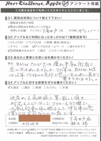 以前、ご売却頂いたM5からどれくらいたったのでしょうかね。