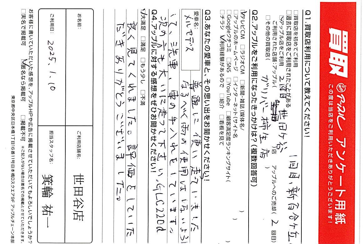 ご利用日 2025/01/10 担当:箕輪