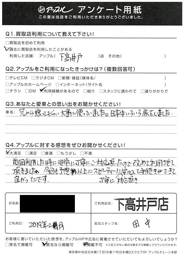 今回も予想以上にスピーディーに丁寧に対応頂き安心して手続きができて良かったです。