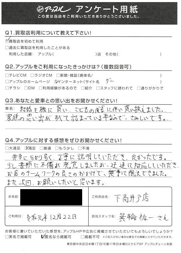 家族の思い出がすべて詰まっている車なのでさみしいです。