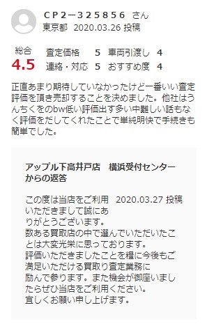 正直あまり期待していなかったけど一番いい査定評価を頂き売却することを決めました。他社はうんちくをのbw低い評価出す多い中難しい話もなく評価をだしてくれたことで単純明快で手続きも簡単でした。