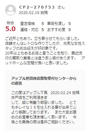 東京都杉並区 ご利用日:2020/2/10 S様 車名:レクサス IS (国内仕様 右H)