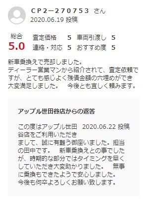 ディーラー営業マンから紹介されて、査定依頼ですが、とても感じよく残債金額の穴埋めができ