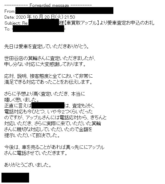 先日は愛車を査定していただきありがとう。