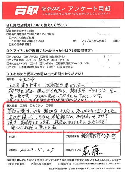 お車のご相談・ 査定だけでもOK! カンタン 入力 30秒 アップルがブランド買取始めました! お電話でも受付中! 受付時間9:30 ~ 18:30 046-833-8881 お車のご相談・ 査定だけでもOK! カンタン 入力 30秒 アップルがブランド買取始めました! お電話でも受付中! 受付時間9:30 ~ 18:30 046-833-8881 アップルがブランド買取始めました! お電話でも受付中! 受付時間9:30 ~ 18:30 046-833-8881 店舗情報 在庫車 スタッフ紹介 ブログ お客様の声 キャンペーン お得 無料査定 click お客様の声 ご記入日: 2023/05/27 M様 車名:トヨタ シエンタ 満足度★★★★★買取の際は、大変親切な対応をありがとうございました。おかげ様で、こちらの希望額でのお取引をさせて頂き感謝しています。機会がありましたら、またどうぞ宜しくお願い致します。 前へ 次へ お客様の声一覧を見る