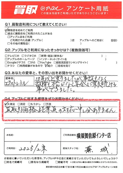 お車のご相談・ 査定だけでもOK! カンタン 入力 30秒 アップルがブランド買取始めました! お電話でも受付中! 受付時間9:30 ~ 18:30 046-833-8881 お車のご相談・ 査定だけでもOK! カンタン 入力 30秒 アップルがブランド買取始めました! お電話でも受付中! 受付時間9:30 ~ 18:30 046-833-8881 アップルがブランド買取始めました! お電話でも受付中! 受付時間9:30 ~ 18:30 046-833-8881 店舗情報 在庫車 スタッフ紹介 ブログ お客様の声 キャンペーン お得 無料査定 click お客様の声 ご記入日: 2025/02/24 S様 車名:日産 エクストレイル 満足度★★★★★ 買取価格、従業員の対応、申し分ありません。 前へ 次へ お客様の声一覧を見る