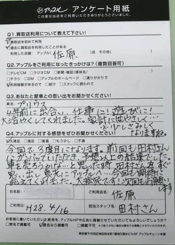 車を売ろうかな・・・・と思ったとき田村さんをすぐ思い出し