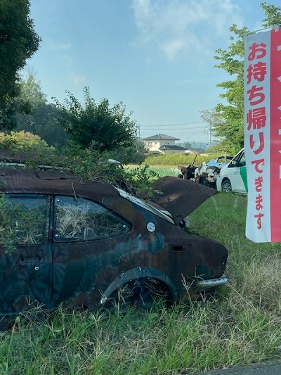 お車のご相談・ 査定だけでもOK! カンタン 入力 30秒 アップルがブランド買取始めました! お電話でも受付中! 受付時間10:00 ~ 19:00 046-246-2828 お車のご相談・ 査定だけでもOK! カンタン 入力 30秒 アップルがブランド買取始めました! お電話でも受付中! 受付時間10:00 ~ 19:00 046-246-2828 アップルがブランド買取始めました! お電話でも受付中! 受付時間10:00 ~ 19:00 046-246-2828 店舗情報 在庫車 スタッフ紹介 ブログ お客様の声 キャンペーン 無料査定 click [ つぶやき ] 2022/11/03 (木) 17:17 茨城旅。。。番外編 皆様こんばんは~(^^♪11月に入りましたね~🌟今年も残すところ2ヵ月。。。あっという間に2022年が過ぎようとしています😌大掃除が大変にならぬよう今から少しずつ頑張りましょうね💦さて、本日の【たいらブログ】は茨城旅の番外編です🤗早朝ゴルフ場に向かう途中によく言えばオブジェ✨のような車🚙💨を発見しました!!車の中から木が生えてます😅💦花柄が写っているのは私のゴルフウエアなので花が咲いているわけではありません💦こんなになるまで放置されているなんてびっくりしました😵💫車で通りすがりに見かけたのではっきりとはわかりませんが修理工場の一角に放置されている?ような感じでしたね😌何枚か連写したうちの一枚にきれいに映りこんだのぼり~~😝😝😝車お持ち帰りできんのかーーーーい(笑)ってびっくりしましたが隣のお店ののぼりかと思います。。。😅💦車が作られた時、こんな未来になるなんて誰も想像できなかったでしょうがあのような車を見るとなんだか切なくなってしまいました💧野良猫ちゃんたちの隠れ家になっていればまだほっこりしますね🙌本日は短めにこの辺で(^^)/~~~ 2022-11-03 17:17:45 新しい記事へ 古い記事へ 最新記事 ◆ゴールデンウィーク休業のお知らせ◆◆久しぶりの二人ランチ◆おしゃれなカフェに本日は・・・◆お散歩へ◆ 店舗情報に戻る 月別アーカイブ 2026年04月(12)2026年03月(11)2026年02月(18)2026年01月(18)2025年12月(10)2025年11月(9)2025年10月(12)2025年09月(10)2025年08月(10)2025年07月(5)2025年06月(5)2025年05月(11)2025年04月(12)2025年03月(15)2025年02月(13)2025年01月(16)2024年12月(7)2024年11月(8)2024年10月(7)2024年09月(9)2024年08月(6)2024年07月(11)2024年06月(9)2024年05月(7)2024年04月(15)2024年03月(10)2024年02月(7)2024年01月(8)2023年12月(3)2023年11月(7)2023年10月(8)2023年09月(9)2023年08月(9)2023年07月(11)2023年06月(3)2023年05月(7)2023年04月(4)2023年03月(7)2023年02月(5)2023年01月(14)2022年12月(6)2022年11月(7)2022年10月(11)2022年09月(9)2022年08月(10)2022年07月(16)2022年06月(15)2022年05月(11)2022年04月(8)2022年03月(7)2022年02月(5)2022年01月(9)2021年12月(9)2021年11月(10)2021年10月(11)2021年09月(9)2021年08月(10)2021年07月(10)2021年06月(10)2021年05月(9)2021年04月(11)2021年03月(5)2021年02月(7)2021年01月(4)2020年12月(5)2020年11月(6)2020年10月(6)2020年09月(6)2020年08月(9)2020年07月(6)2020年06月(7)2020年05月(6)2020年04月(5)2020年03月(7)2020年02月(7)2020年01月(10)2019年12月(7)2019年11月(8)2019年10月(8)2019年09月(9)2019年08月(8)2019年07月(12)2019年06月(8)2019年05月(8)2019年04月(8)2019年03月(7)2019年02月(8)2018年12月(11)2018年11月(10)2018年10月(10)2018年09月(16)2018年08月(14)2018年07月(16)2018年06月(15)2018年05月(14)2018年04月(12)2018年03月(10)2018年02月(10)2018年01月(11)2017年12月(5)2017年11月(8)2017年10月(6)2017年09月(8)2017年08月(25)2017年07月(13)2017年06月(13)2017年05月(10)2017年04月(8)2017年03月(6)2017年02月(8)2017年01月(8)2016年12月(7)2016年11月(10)2016年10月(12)2016年09月(12)2016年08月(24)2016年07月(4)2016年06月(6)2016年05月(3)2016年04月(7)2016年03月(7)2016年02月(5)2016年01月(7)2015年12月(6)2015年11月(5)2015年10月(3)2015年09月(8)2015年08月(9)2015年07月(9)2015年06月(8)2015年05月(8)2015年04月(11)2015年03月(8)2015年02月(8)2015年01月(7)2014年12月(7)2014年11月(8)2014年10月(11)2014年09月(11)2014年08月(11)2014年07月(9)2014年06月(13)2014年05月(12)2014年04月(7)2014年02月(1)2014年01月(2)2013年12月(1)2013年11月(1)2013年10月(1)2013年08月(2)