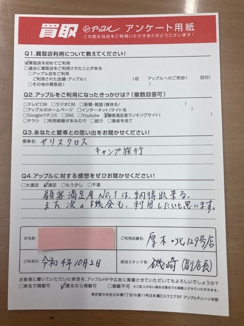 お車のご相談・ 査定だけでもOK! カンタン 入力 30秒 アップルがブランド買取始めました! お電話でも受付中! 受付時間10:00 ~ 19:00 046-246-2828 お車のご相談・ 査定だけでもOK! カンタン 入力 30秒 アップルがブランド買取始めました! お電話でも受付中! 受付時間10:00 ~ 19:00 046-246-2828 アップルがブランド買取始めました! お電話でも受付中! 受付時間10:00 ~ 19:00 046-246-2828 店舗情報 在庫車 スタッフ紹介 ブログ お客様の声 キャンペーン 無料査定 click お客様の声 ご記入日: 2022/10/02 厚木市 S様 車名:トヨタ ヤリスクロス 顧客満足度No.1は、納得出来る。また次の機会も、利用したいと思います。 前へ 次へ お客様の声一覧を見る