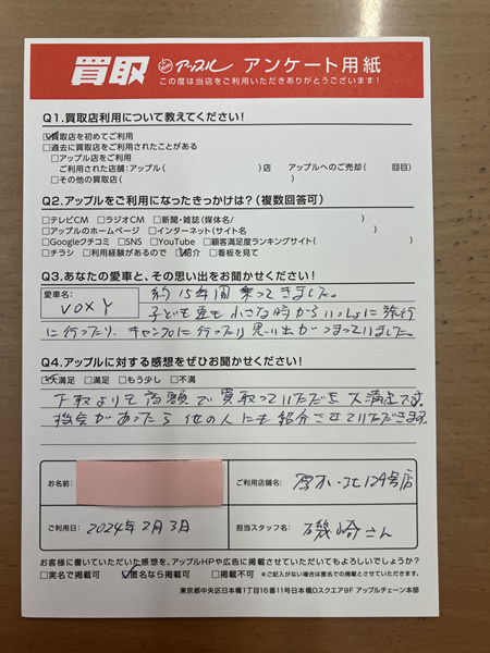 お車のご相談・ 査定だけでもOK! カンタン 入力 30秒 アップルがブランド買取始めました! お電話でも受付中! 受付時間10:00 ~ 19:00 046-246-2828 お車のご相談・ 査定だけでもOK! カンタン 入力 30秒 アップルがブランド買取始めました! お電話でも受付中! 受付時間10:00 ~ 19:00 046-246-2828 アップルがブランド買取始めました! お電話でも受付中! 受付時間10:00 ~ 19:00 046-246-2828 店舗情報 在庫車 スタッフ紹介 ブログ お客様の声 キャンペーン 無料査定 click お客様の声 ご記入日: 2024/02/03 愛甲郡愛川町 S様 車名:トヨタ ヴォクシー 下取よりも高額で買取っていただき大満足です。機会があったら他の人にも紹介させていただきます。 前へ 次へ お客様の声一覧を見る
