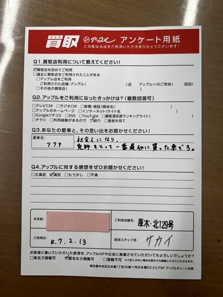 お車のご相談・ 査定だけでもOK! カンタン 入力 30秒 アップルがブランド買取始めました! お電話でも受付中! 受付時間10:00 ~ 19:00 046-246-2828 お車のご相談・ 査定だけでもOK! カンタン 入力 30秒 アップルがブランド買取始めました! お電話でも受付中! 受付時間10:00 ~ 19:00 046-246-2828 アップルがブランド買取始めました! お電話でも受付中! 受付時間10:00 ~ 19:00 046-246-2828 店舗情報 在庫車 スタッフ紹介 ブログ お客様の声 キャンペーン 無料査定 click お客様の声 ご記入日: 2025/02/13 厚木市 M様 車名:トヨタ アクア 社会人になり免許をとって一番最初に買った車です。 前へ 次へ お客様の声一覧を見る