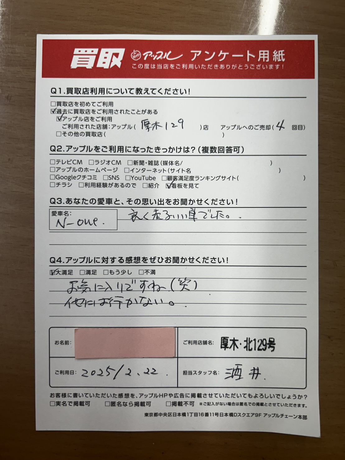 お車のご相談・ 査定だけでもOK! カンタン 入力 30秒 アップルがブランド買取始めました! お電話でも受付中! 受付時間10:00 ~ 19:00 046-246-2828 お車のご相談・ 査定だけでもOK! カンタン 入力 30秒 アップルがブランド買取始めました! お電話でも受付中! 受付時間10:00 ~ 19:00 046-246-2828 アップルがブランド買取始めました! お電話でも受付中! 受付時間10:00 ~ 19:00 046-246-2828 店舗情報 在庫車 スタッフ紹介 ブログ お客様の声 キャンペーン 無料査定 click お客様の声 ご記入日: 2025/02/22 厚木市 I様 車名:ホンダ N-ONE 良く走る良い車でした。 前へ 次へ お客様の声一覧を見る