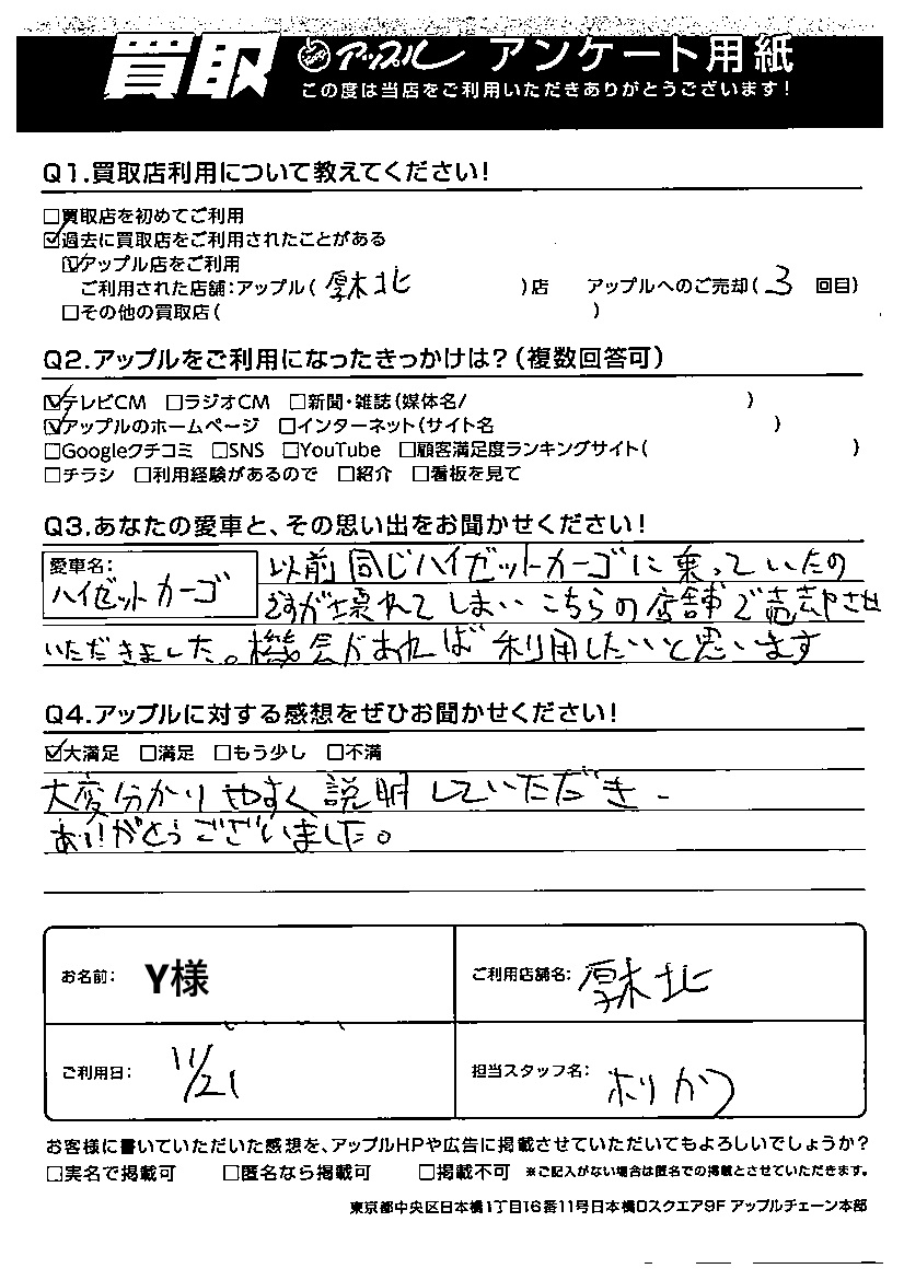 Y様 車名:ダイハツ ハイゼットカーゴ