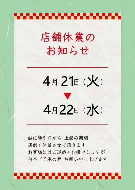 お車のご相談・ 査定だけでもOK! カンタン 入力 30秒 アップルがブランド買取始めました! お電話でも受付中! 受付時間AM10:00~PM7:00(毎週水曜日店休) 052-304-0136 お車のご相談・ 査定だけでもOK! カンタン 入力 30秒 アップルがブランド買取始めました! お電話でも受付中! 受付時間AM10:00~PM7:00(毎週水曜日店休) 052-304-0136 アップルがブランド買取始めました! お電話でも受付中! 受付時間AM10:00~PM7:00(毎週水曜日店休) 052-304-0136 店舗情報 在庫車 スタッフ紹介 ブログ お客様の声 キャンペーン 無料査定 click [ 未分類 ] 2026/04/11 (土) 10:28 ☆臨時休業のお知らせ☆ 皆様こんにちは!アップル富田店の岩田です(=゚ω゚)ノ昨日は雨が降ってて生憎の天気でしたが、今日は綺麗な青空ですね!風は強いですが、当店は風にも負けずで元気に営業しております!皆様のご来店をお待ちしております!!・・・さて、今回は臨時休業のお知らせです!誠に勝手ながら、4/21㈫・4/22㈬は社員研修の為、店舗を休業させていただきます。なお、4/23㈭はAM10時より通常営業いたします。ご来店を予定していた皆様にはご不便・ご迷惑をお掛けいたしますが、よろしくお願いいたします。以上、岩田でした(=゚ω゚)ノ 2026-04-11 10:28:15 新しい記事へ 古い記事へ 最新記事 ☆お知らせ☆☆ナポリピッツァ☆☆臨時休業のお知らせ☆ゴンチャ☆納車ブログ☆ 店舗情報に戻る 月別アーカイブ 2026年04月(5)2026年03月(6)2026年02月(9)2026年01月(7)2025年12月(9)2025年11月(13)2025年10月(6)2025年09月(12)2025年08月(17)2025年07月(11)2025年06月(7)2025年05月(20)2025年04月(10)2025年03月(7)2025年02月(6)2025年01月(8)2024年12月(12)2024年11月(14)2024年10月(14)2024年09月(20)2024年08月(15)2024年07月(18)2024年06月(17)2024年05月(18)2024年04月(15)2024年03月(15)2024年02月(13)2024年01月(10)2023年12月(5)2023年11月(8)2023年10月(8)2023年09月(3)2023年08月(16)2023年07月(8)2023年06月(10)2023年05月(11)2023年04月(9)2023年03月(3)2023年02月(5)2023年01月(4)2022年12月(4)2022年11月(6)2022年10月(4)2022年09月(9)2022年08月(9)2022年07月(8)2022年06月(9)2022年05月(7)2022年04月(8)2022年03月(6)2022年02月(3)2022年01月(8)2021年12月(7)2021年11月(14)2021年10月(14)2021年09月(14)2021年08月(22)2021年07月(22)2021年06月(22)2021年05月(21)2021年04月(20)2021年03月(8)2021年02月(8)2021年01月(6)2020年12月(9)2020年11月(11)2020年10月(7)2020年09月(11)2020年08月(22)2020年07月(26)2020年06月(26)2020年05月(22)2020年04月(25)2020年03月(25)2020年02月(25)2020年01月(22)2019年12月(14)2019年11月(12)2019年10月(11)2019年09月(4)2019年08月(12)2019年07月(9)2019年06月(20)2019年05月(22)2019年04月(7)2019年03月(5)2019年02月(3)2019年01月(1)2018年12月(5)2018年11月(4)2018年10月(3)2018年09月(9)2018年08月(7)2018年07月(8)2018年06月(7)2018年05月(9)2018年04月(7)2018年03月(4)2018年02月(5)2018年01月(13)2017年12月(5)2017年11月(10)2017年10月(7)2017年09月(5)2017年08月(4)2017年07月(4)2017年06月(2)2017年05月(5)2017年04月(5)2017年03月(1)2017年02月(2)2017年01月(7)2016年12月(2)2016年11月(2)2016年10月(4)2016年09月(3)2016年08月(8)2016年07月(4)2016年06月(3)2016年05月(4)2016年04月(3)2016年03月(2)2016年02月(1)2016年01月(6)2015年12月(4)2015年11月(1)2015年10月(3)2015年09月(4)2015年08月(1)2015年06月(2)2015年05月(2)2015年04月(4)2015年03月(1)2015年02月(4)2015年01月(3)2014年12月(3)2014年11月(4)2014年10月(3)2014年09月(6)2014年08月(8)2014年07月(8)2014年06月(10)2014年05月(7)2014年04月(4)2014年03月(1)2014年02月(1)2014年01月(2)2013年12月(3)2013年10月(1)2013年09月(1)