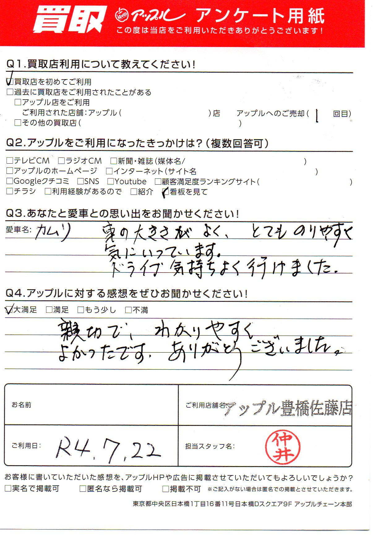 お車のご相談・ 査定だけでもOK! カンタン 入力 30秒 アップルがブランド買取始めました! お電話でも受付中! 受付時間10:00 ~ 19:00 0532-64-5911 お車のご相談・ 査定だけでもOK! カンタン 入力 30秒 アップルがブランド買取始めました! お電話でも受付中! 受付時間10:00 ~ 19:00 0532-64-5911 アップルがブランド買取始めました! お電話でも受付中! 受付時間10:00 ~ 19:00 0532-64-5911 店舗情報 在庫車 スタッフ紹介 ブログ お客様の声 キャンペーン 無料査定 click お客様の声 ご記入日: 2022/07/22 愛知県 匿名希望様 車名:トヨタ カムリ 親切で、わかりやすく、よかったです。ありがとうございました。 前へ 次へ お客様の声一覧を見る