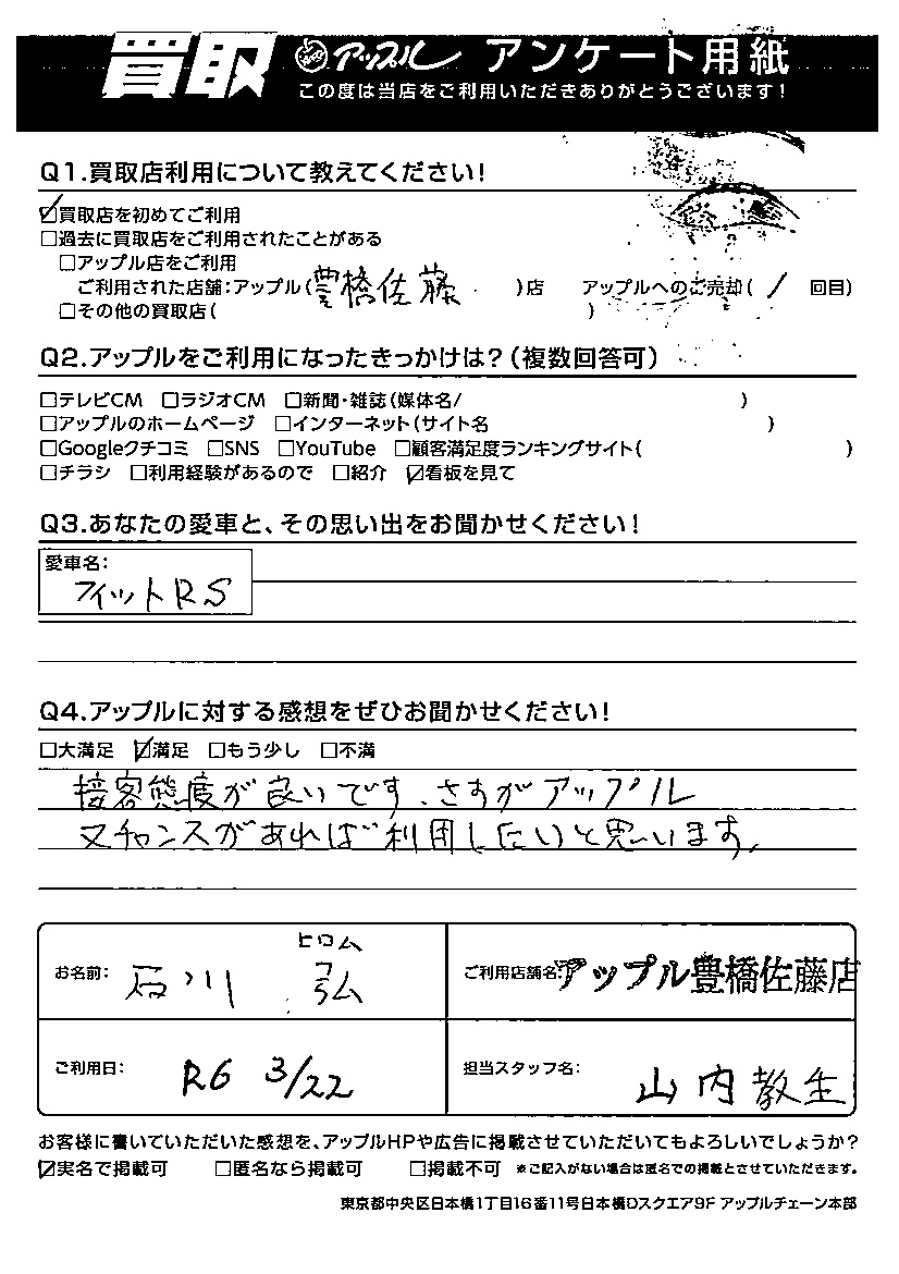 石川 弘様 車名:ホンダ フィット(H25年9月以降のハイブリッド含む)
