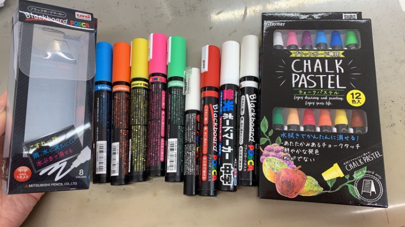 ペンはブラックボード用のポスカと蛍光マーカー、