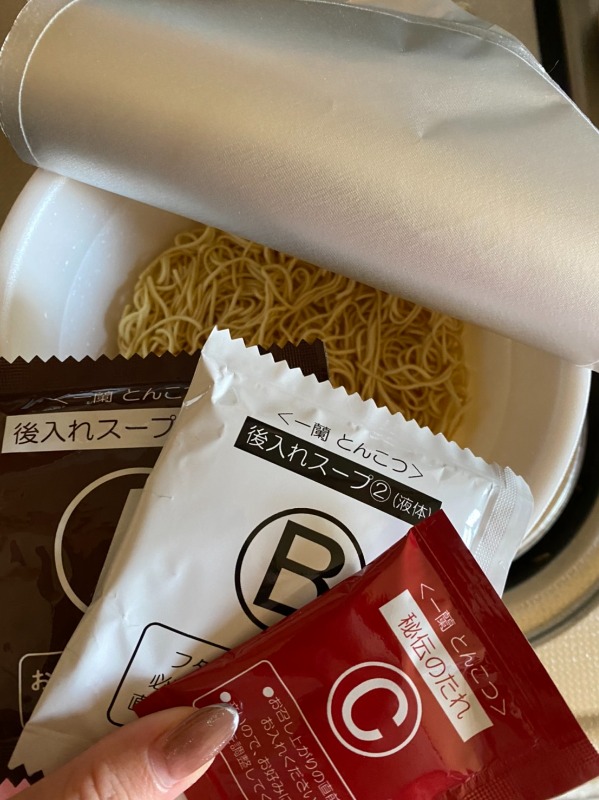 最近巷で話題の博多豚骨ラーメンの一蘭のカップ麺をやっとこさ手に入れたので食べてみました"(-""-)"
