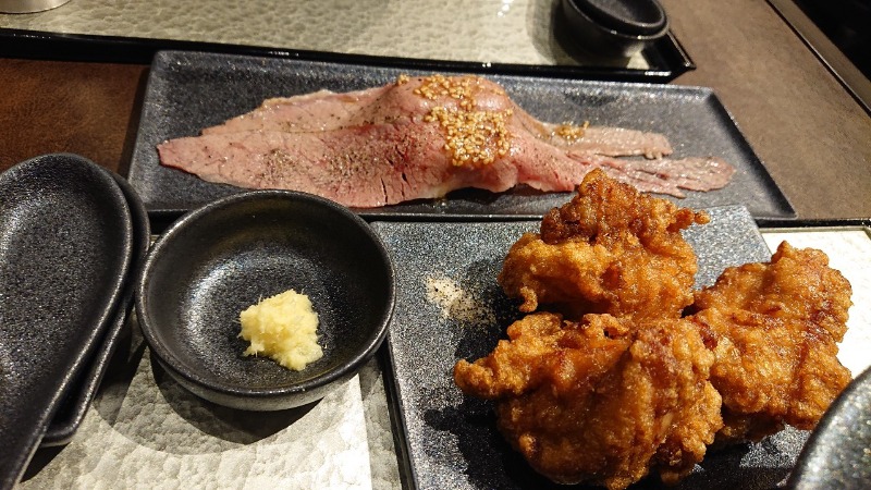一緒に訪れた彼はから揚げと肉寿司も食べてました!!