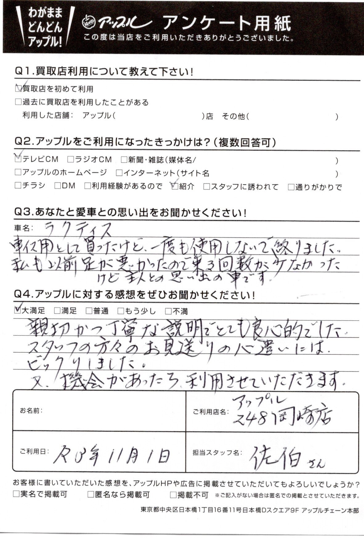 お車のご相談・ 査定だけでもOK! カンタン 入力 30秒 アップルがブランド買取始めました! お電話でも受付中! 受付時間10:00 ~ 19:00 0564-25-8118 お車のご相談・ 査定だけでもOK! カンタン 入力 30秒 アップルがブランド買取始めました! お電話でも受付中! 受付時間10:00 ~ 19:00 0564-25-8118 アップルがブランド買取始めました! お電話でも受付中! 受付時間10:00 ~ 19:00 0564-25-8118 店舗情報 在庫車 スタッフ紹介 ブログ お客様の声 キャンペーン お得 無料査定 click お客様の声 ご記入日: 2021/11/01 愛知県 匿名希望様 車名:トヨタ ラクティス 親切かつ丁寧な説明でとても良心的でした。スタッフの方々のお見送りの心遣いにはビックリしました。又、機会があったら利用させていただきます。 前へ 次へ お客様の声一覧を見る