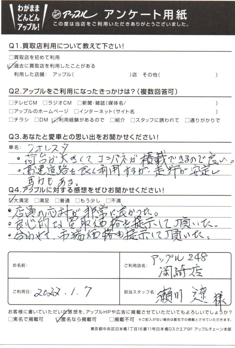 お車のご相談・ 査定だけでもOK! カンタン 入力 30秒 アップルがブランド買取始めました! お電話でも受付中! 受付時間10:00 ~ 19:00 0564-25-8118 お車のご相談・ 査定だけでもOK! カンタン 入力 30秒 アップルがブランド買取始めました! お電話でも受付中! 受付時間10:00 ~ 19:00 0564-25-8118 アップルがブランド買取始めました! お電話でも受付中! 受付時間10:00 ~ 19:00 0564-25-8118 店舗情報 在庫車 スタッフ紹介 ブログ お客様の声 キャンペーン お得 無料査定 click お客様の声 ご記入日: 2022/01/07 愛知県 匿名希望様 車名:スバル フォレスター ・店員の対応が非常に良かった。・良心的な買取価格を提示して頂いた。・合わせて、市場価格も提示して頂いた。 前へ 次へ お客様の声一覧を見る