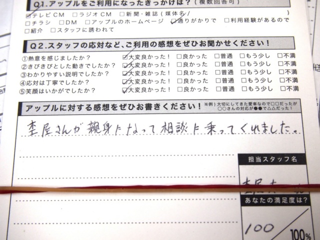 お車のご相談・ 査定だけでもOK! カンタン 入力 30秒 アップルがブランド買取始めました! お電話でも受付中! 受付時間10:00 ~ 19:00 0564-25-8118 お車のご相談・ 査定だけでもOK! カンタン 入力 30秒 アップルがブランド買取始めました! お電話でも受付中! 受付時間10:00 ~ 19:00 0564-25-8118 アップルがブランド買取始めました! お電話でも受付中! 受付時間10:00 ~ 19:00 0564-25-8118 店舗情報 在庫車 スタッフ紹介 ブログ お客様の声 キャンペーン お得 無料査定 click お客様の声 ご記入日: 2011/10/24 M.T様 杢屋さんが親身になって相談に乗ってくれました。 前へ 次へ お客様の声一覧を見る