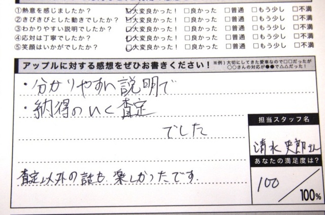 お車のご相談・ 査定だけでもOK! カンタン 入力 30秒 アップルがブランド買取始めました! お電話でも受付中! 受付時間10:00 ~ 19:00 0564-25-8118 お車のご相談・ 査定だけでもOK! カンタン 入力 30秒 アップルがブランド買取始めました! お電話でも受付中! 受付時間10:00 ~ 19:00 0564-25-8118 アップルがブランド買取始めました! お電話でも受付中! 受付時間10:00 ~ 19:00 0564-25-8118 店舗情報 在庫車 スタッフ紹介 ブログ お客様の声 キャンペーン お得 無料査定 click お客様の声 ご記入日: 2011/10/24 M.H様 ・分かりやすい説明で納得のいく査定でした査定以外の話も楽しかったです。 前へ 次へ お客様の声一覧を見る